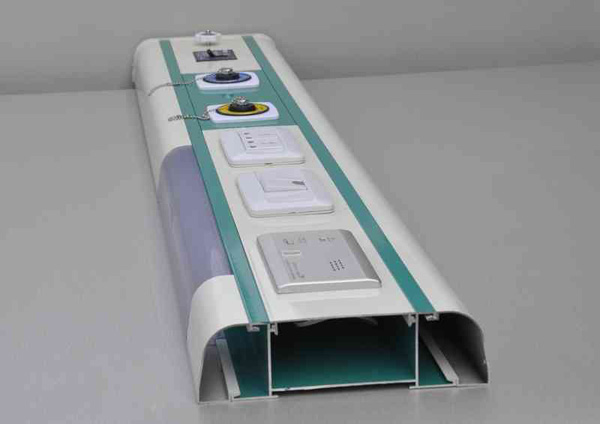 用設(shè)備帶固定在病房床頭上方的墻壁上,用來安裝電源插座、呼叫按鈕、電源開關(guān)、中心供氧及負(fù)壓吸引等系統(tǒng)的氣體閥等設(shè)備,另外也可固定其它一些醫(yī)療設(shè)備,如輸液裝置、其它報警裝置等。