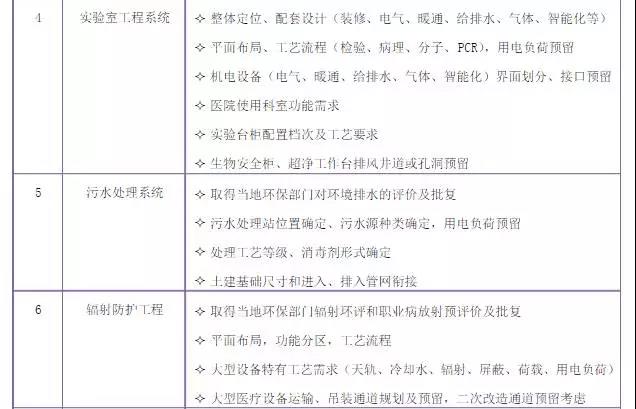 各系統工藝設計要求 醫院建設過程中,除了從醫院定位和使用功能要求方面考慮外,還需要注意各專項系統會受到建筑結構、安裝空間、設置場所等因素影響,而且除了做好本系統的工藝設計要求外,還需要主體建筑和機電設備的各項配合工作,常見的有機房設置、井道空間、機電接口配合等內容,具體工藝要求總結如下: