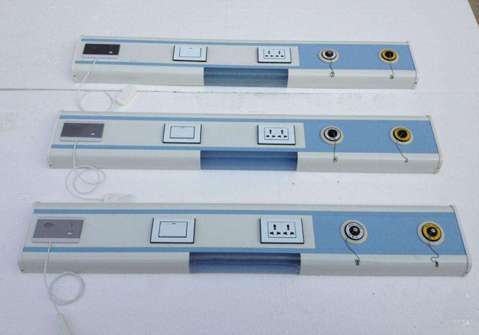設備帶固定在病房床頭上方的墻壁上,用來安裝電源插座、呼叫按鈕、電源開關、中心供氧及負壓吸引等系統的氣體閥等設備,另外也可固定其它一些醫療設備,如輸液裝置、其它報警裝置等。