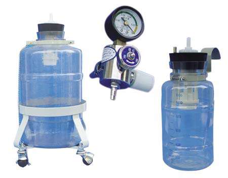 濕化瓶又稱為氧氣吸入器,分為兩種,一種是安裝在設備帶、設備墻及吊塔上面的,不帶減壓裝置,該種產品又稱為墻插試氧氣吸入器;另一種是安裝在可移動的氧氣瓶上,自帶減壓裝置,它們的特點如下: 1、接插式氧氣吸入器: 主要應用于設備帶、醫療設備墻、吊塔等供氣終端 適用氣體:氧氣 插頭有公制和英制兩種可供選擇 工作壓力:0.25MPa 帶濕化瓶 流量范圍:0-10L/Min 2、氣瓶式氧氣吸入器: 主要適用于氧氣瓶 適用氣體:氧氣 帶2&rsquo&rsquo壓力表 輸入壓力:15Mps 設定壓力:0.25Mpa 流量范圍:0-10L/Min 吸引器主要用來收集病人的痰、膿、血等污物。它主要與負壓吸引終端連接。它具有以下特點: 主要應用于醫療設備帶、設備墻、吊塔等供氣終端 適用氣體:負壓吸引 具有溢流安全閥,可防止吸入的污物吸至負壓調整器內或負壓管路系統內。 |